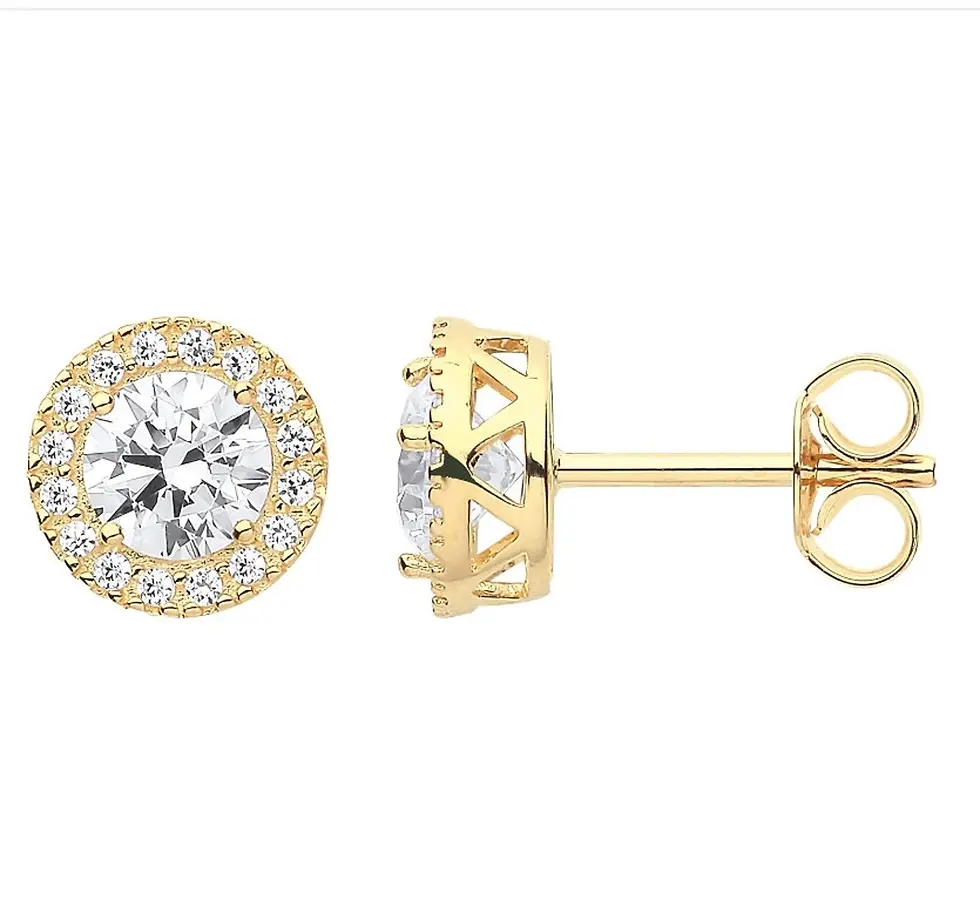 9ct Gold Cz Brilliant Cut Halo Stud Earrings Ladies 9ct Real Gold Gift Boxed